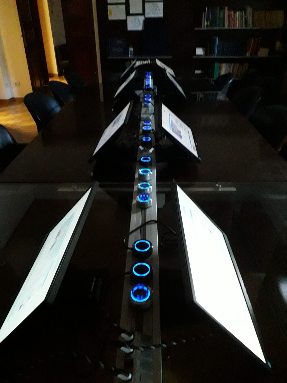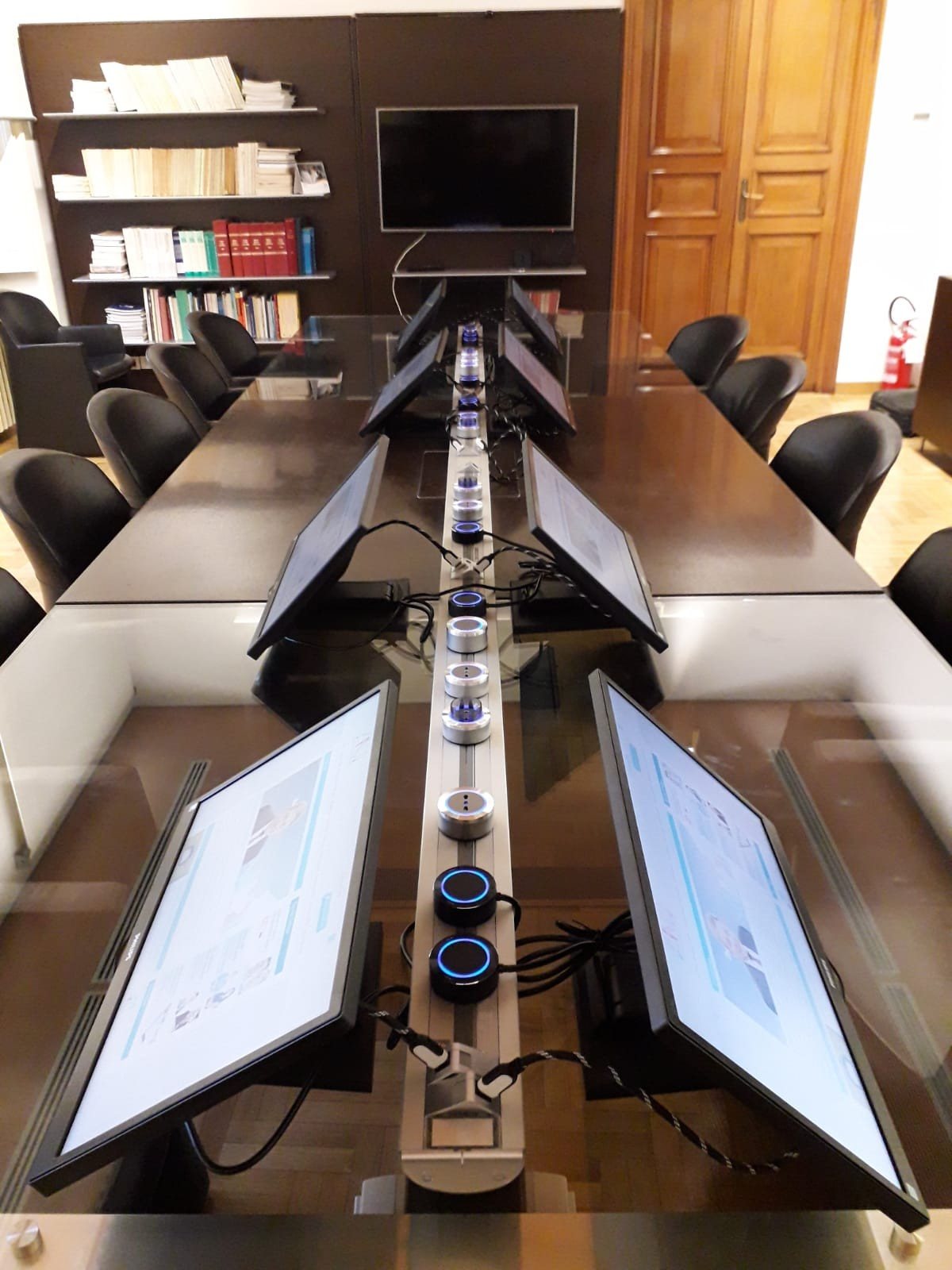 2010 年,在国家协会总部 —— 索尔维里诺街历史大厦的翻新工程中,会议室的报告桌配备了 Power Track VSF1 电动型材,底座以 60° 角安装。