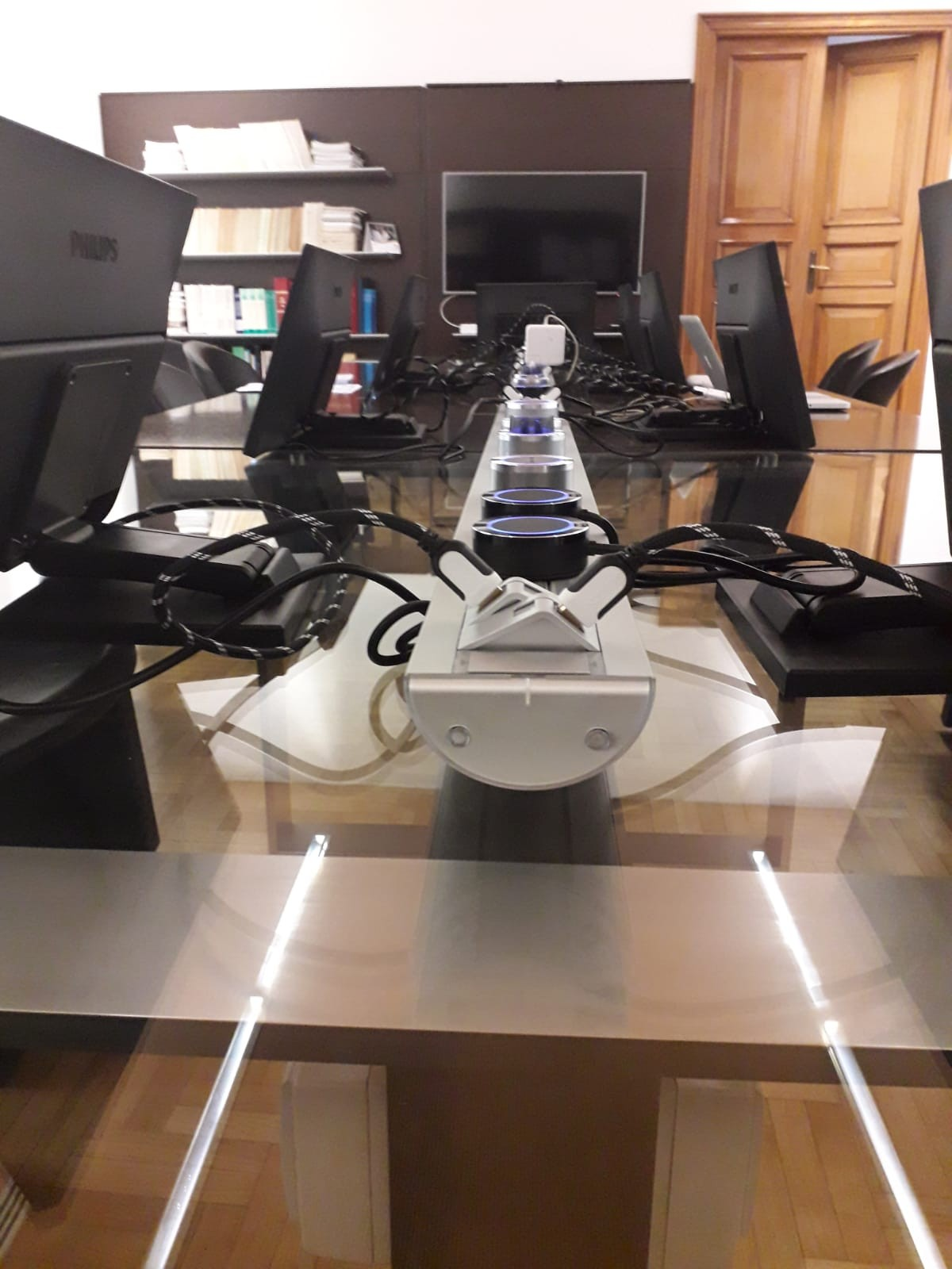 Power Track 被用于为协会的会议桌进行电气化改造,且无需对家具和环境进行大幅改动。事实上,借助 VSF1 型材,只需将产品放置在桌面上并连接电源插座为型材供电即可完成改造。